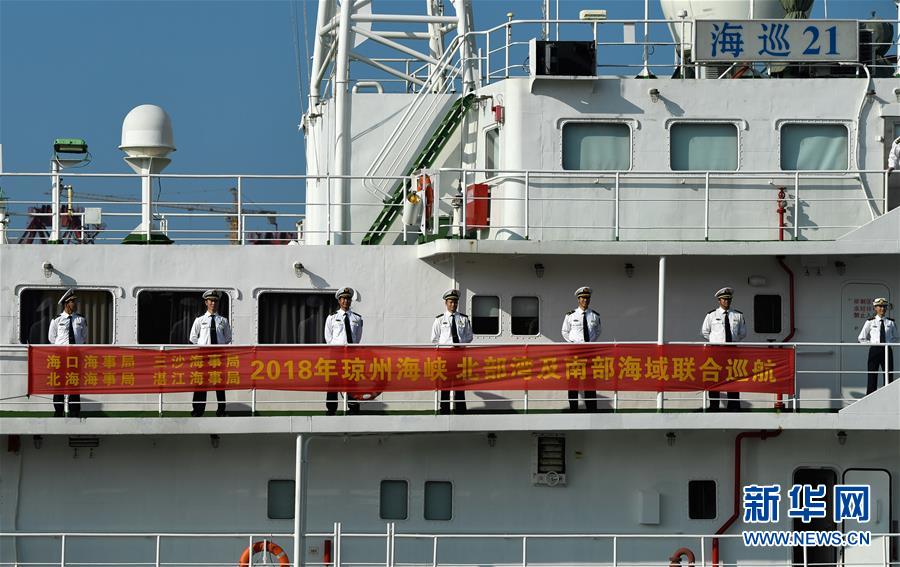 11月3日,“海巡21”輪駛出港口。當(dāng)日,隨著“海巡21”輪緩緩駛離??诤J卤O(jiān)管基地碼頭,由瓊桂粵海事部門(mén)共同開(kāi)展的瓊州海峽、北部灣及環(huán)海南島水域跨轄區(qū)聯(lián)合巡航執(zhí)法活動(dòng)揭開(kāi)序幕。新華社記者楊冠宇攝
