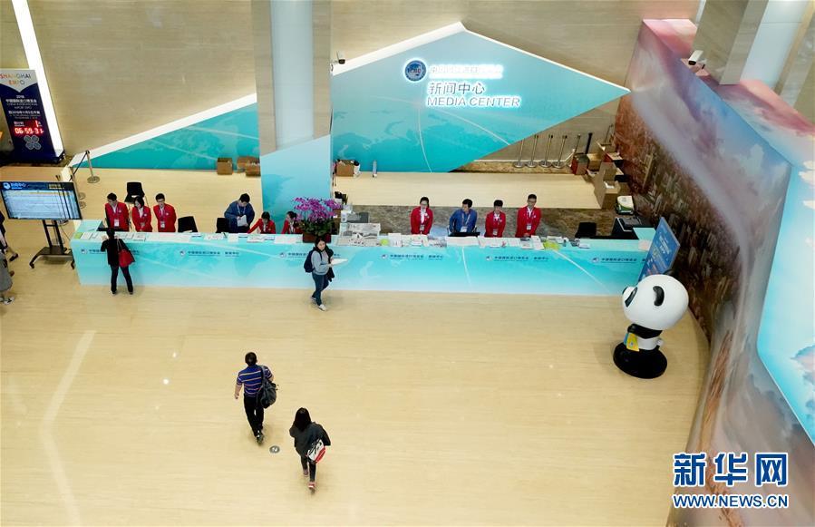 11月4日,媒體記者在首屆中國國際進(jìn)口博覽會(huì)新聞中心咨詢臺(tái)咨詢。新華社記者陳建力攝