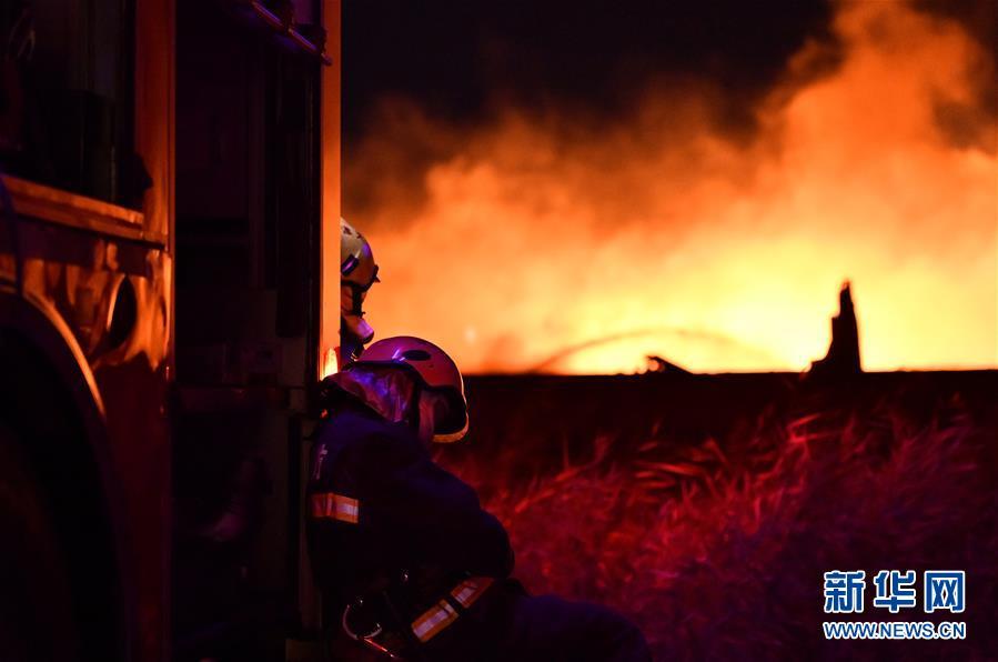10月28日,在天津大港開發(fā)區(qū)火災(zāi)現(xiàn)場(chǎng)附近,奮戰(zhàn)數(shù)小時(shí)的消防員在休整。10月28日晚,天津?yàn)I海新區(qū)大港開發(fā)區(qū)的一處倉儲(chǔ)物流公司潤滑油倉庫發(fā)生火災(zāi)。 新華社記者 李然 攝