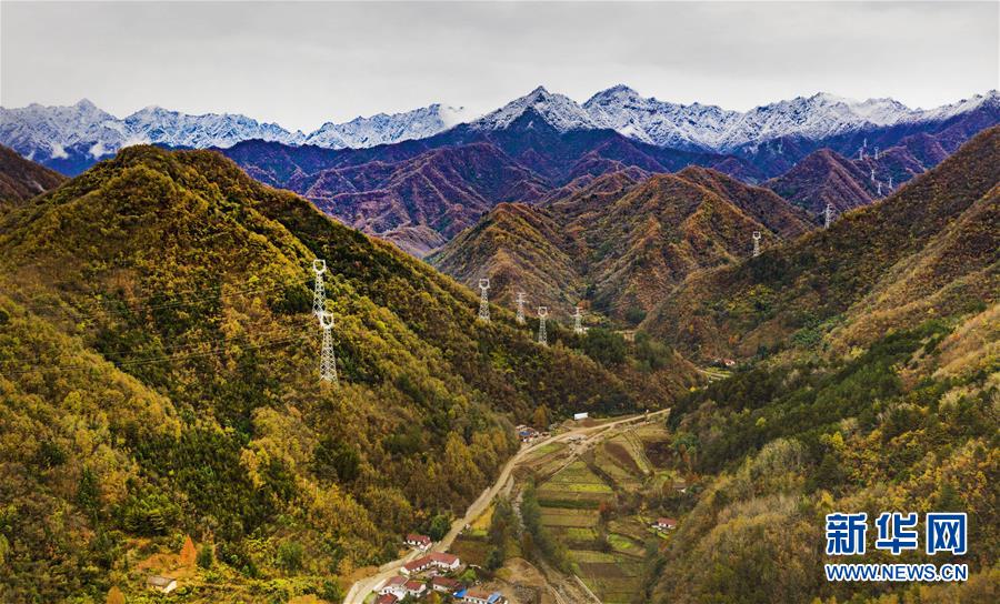 11月5日無人機拍攝的陜西省漢中市佛坪縣城旁的秦嶺景色。  新華社記者陶明攝