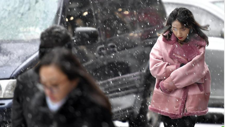 烏魯木齊迎雨雪降溫天氣 風(fēng)雪中民眾 ...