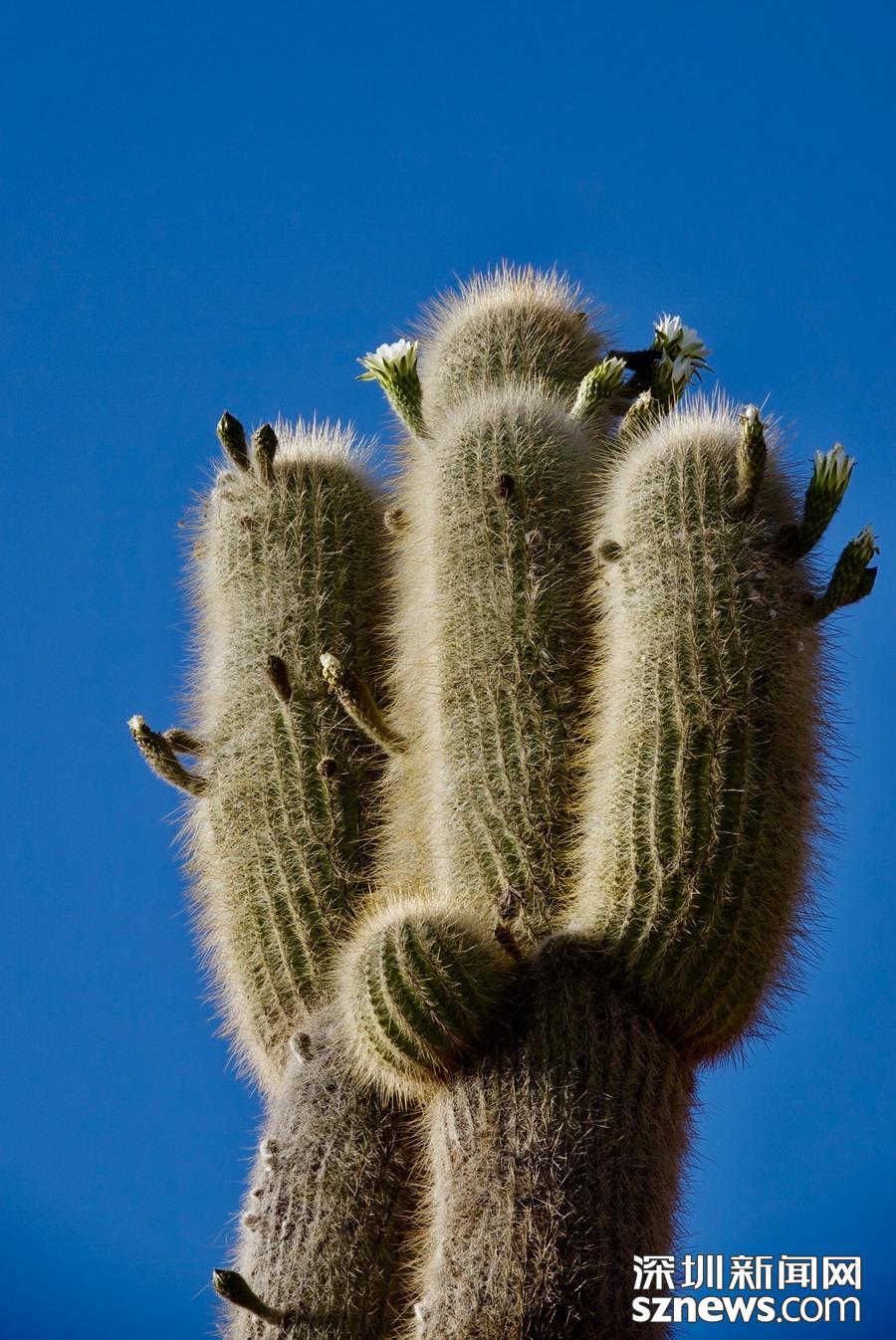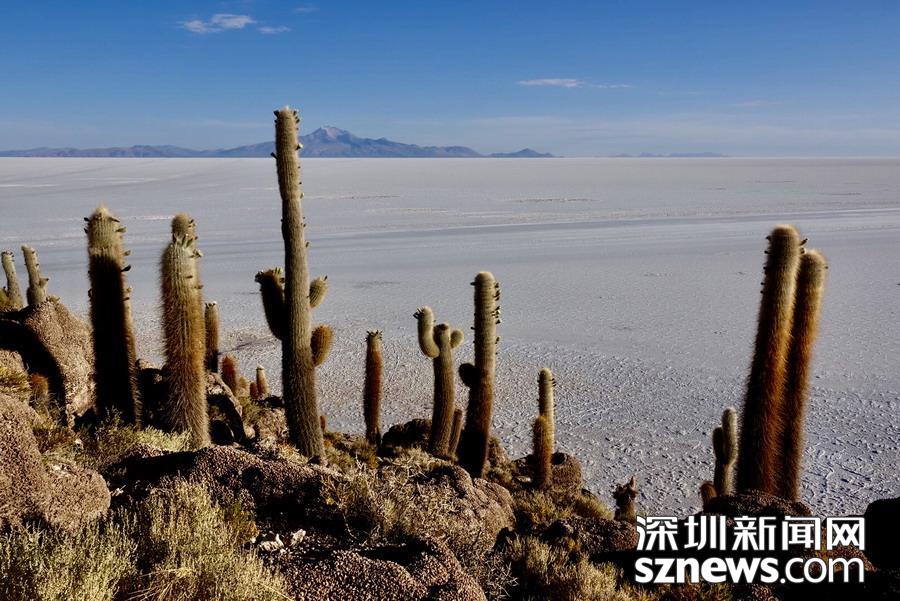 深圳新聞網(wǎng)訊 烏尤尼鹽沼中,有一個孤立的小山頭,猶如瀚海中的小島。島上長滿巨大的仙人柱,據(jù)說有的已經(jīng)生長了上千年。這種形狀各異、耐鹽堿、耐干旱的熱帶植物豐富了鹽沼的風光,構成絕無僅有的世界奇觀。 李仁奇 攝