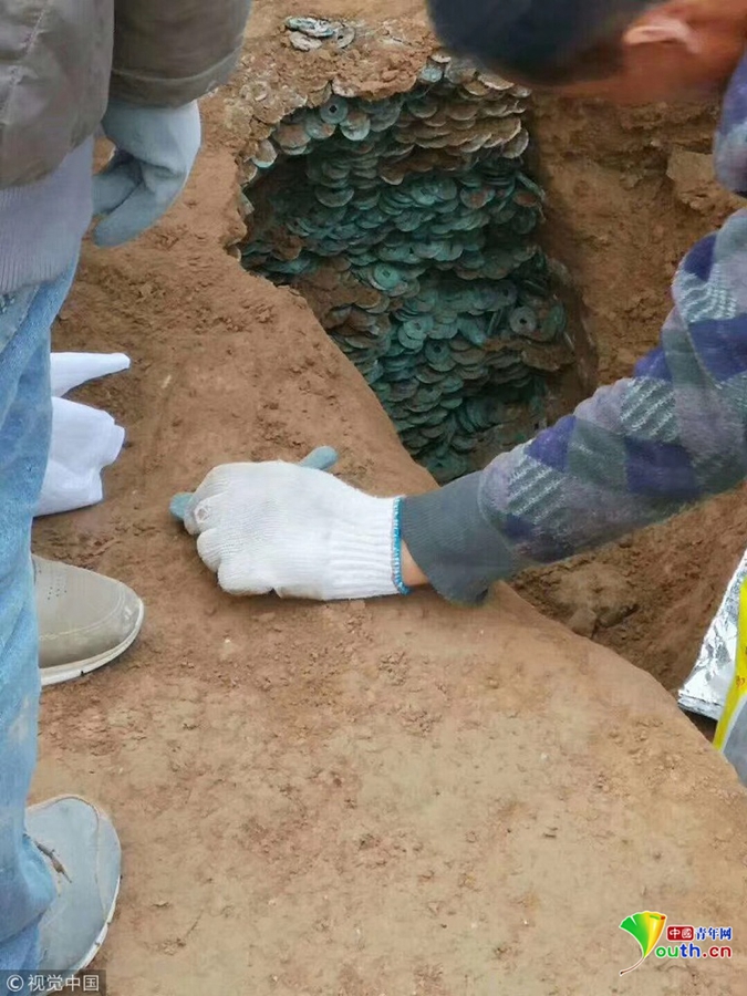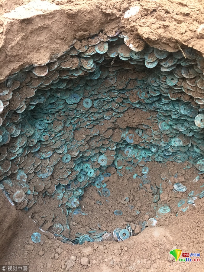 2018年11月9日,陜西渭南,白水一工地發(fā)現(xiàn)大量古幣,共清理發(fā)掘古幣920斤、約10萬枚。經(jīng)初步鑒定,這些古幣多為北宋時期錢幣,初步判斷為一般文物,對研究當(dāng)?shù)亟?jīng)濟(jì)等有一定價值。圖片:視覺中國。文字:華商報(bào)