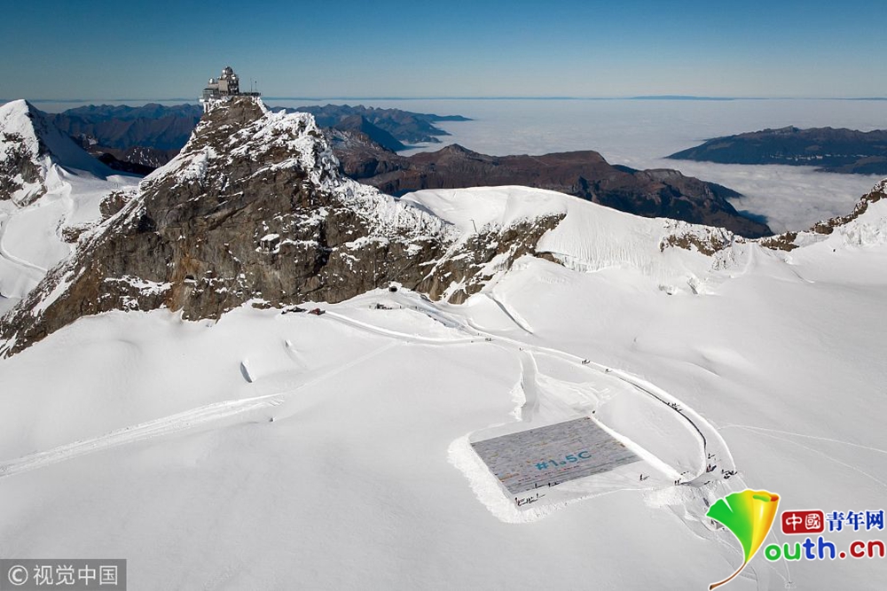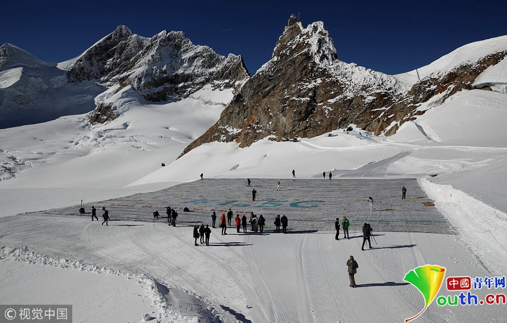 當?shù)貢r間11月16日,瑞士阿爾卑斯山“少女峰”上展示的十萬多張明信片,呼吁關注氣候變暖。這些明信片是由世界各地的人們寄來的,打破了世界上最大明信片的吉尼斯世界記錄。