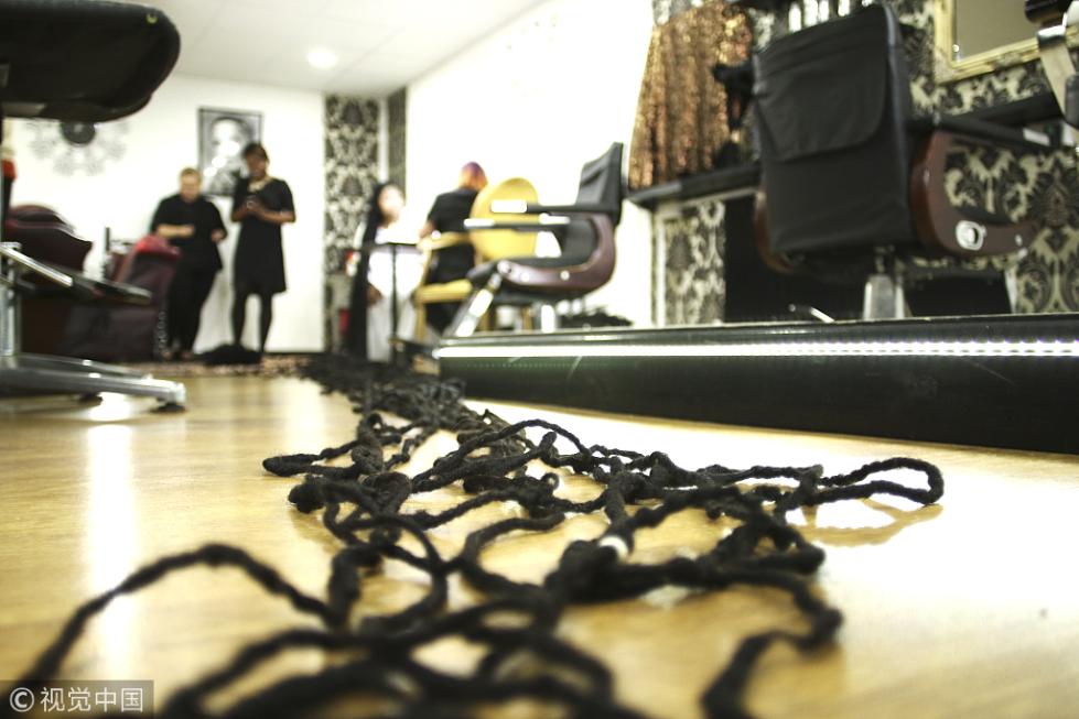 當(dāng)?shù)貢r(shí)間2018年9月14日,英國(guó)韋靈伯勒,正在英國(guó)旅行的Asha Mandela來(lái)自美國(guó)佛羅里達(dá)州,是世界上頭發(fā)最長(zhǎng)的女人。她的頭發(fā)現(xiàn)在長(zhǎng)約34米(110英尺),超過(guò)三輛雙層巴士的長(zhǎng)度。Asha Mandela十年前打破了世界吉尼斯頭發(fā)最長(zhǎng)的紀(jì)錄。