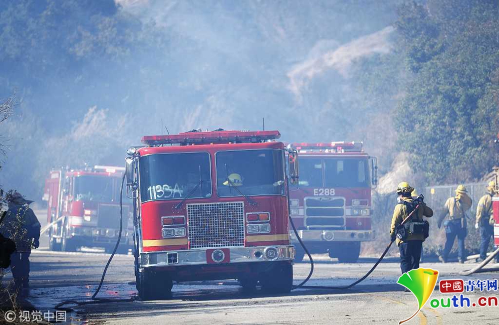 圖為文圖拉郡火場附近多輛消防車集結(jié)。