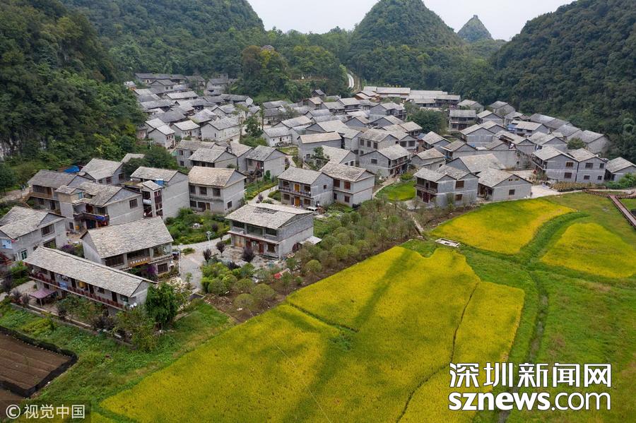 深圳新聞網(wǎng)訊  2018年9月27日,貴州安順,航拍坐落在群山中的鎮(zhèn)寧布依族苗族自治縣高蕩村。鎮(zhèn)寧高蕩村民居為石木結(jié)構(gòu)干欄式石板房,建造時間五、六十年至數(shù)百年不等,建筑保存基本完好。