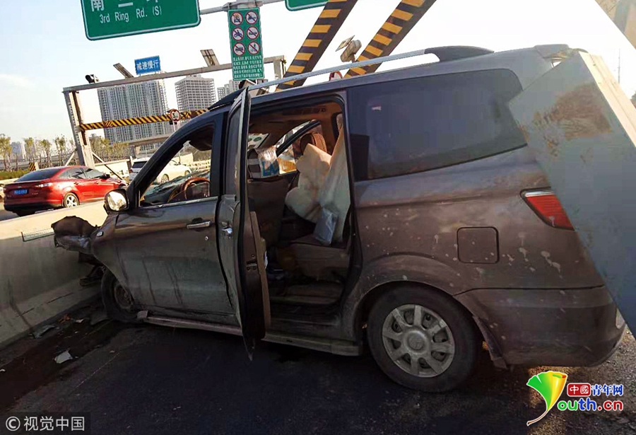 快速路司機開車“走神” 眨眼撞塌限高桿