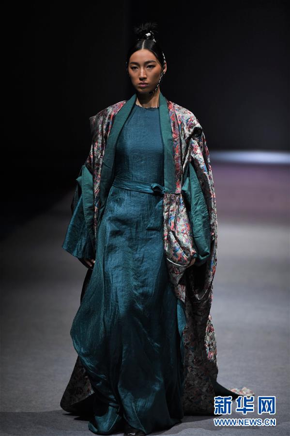 模特在AJ-NAMO藏裝秀上展示藏族設計師阿佳娜姆設計的時裝(11月18日攝)。