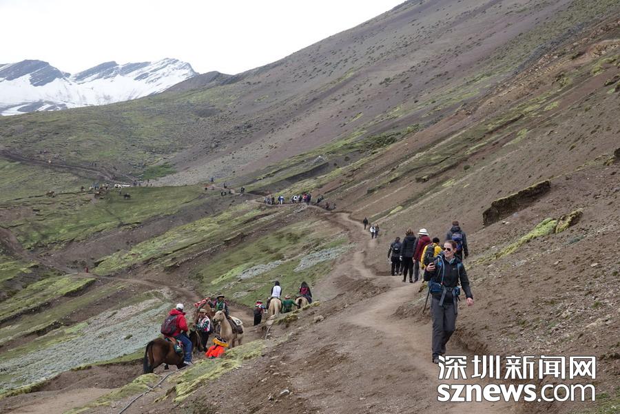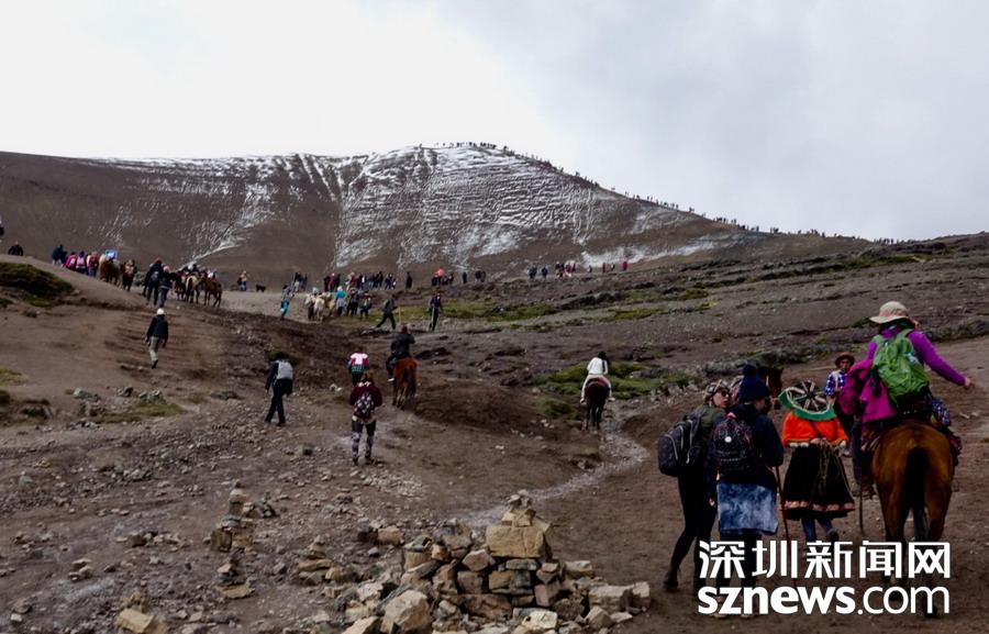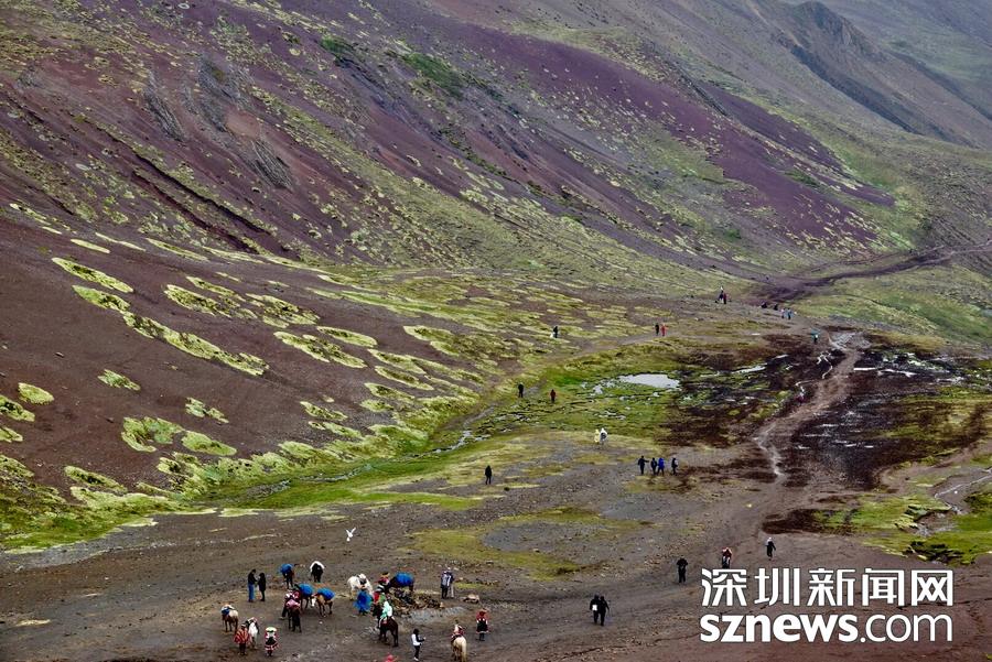 深圳新聞網(wǎng)訊 彩虹山被當(dāng)?shù)厝朔Q(chēng)為維昆尼卡。深藏于秘魯庫(kù)斯科古城附近的安第斯山脈之中,多年來(lái)它一直隱藏在冰雪之下,據(jù)說(shuō)是因?yàn)闇厥倚?yīng),雪線升高露出真容,才于2016年被發(fā)現(xiàn),并迅速成為世界知名景點(diǎn)。這里可以觀賞到的還有冰川、高山草甸、羊駝以及當(dāng)?shù)厣贁?shù)民族的風(fēng)情。李仁奇攝