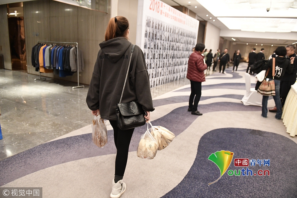 2018年11月20日,山東日照,一位培訓(xùn)機(jī)構(gòu)老師買來不少外賣,她介紹,這是給學(xué)生路上吃的,活動結(jié)束他們就會立即趕往下一個目的地,參加另一個比賽。圖片作者:視覺中國
