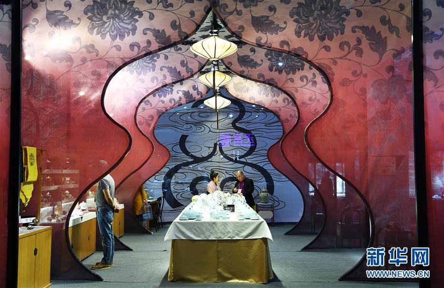 參觀者正在中國景德鎮(zhèn)國際陶瓷博覽會參觀(10月18日攝)。 新華社記者 萬象 攝