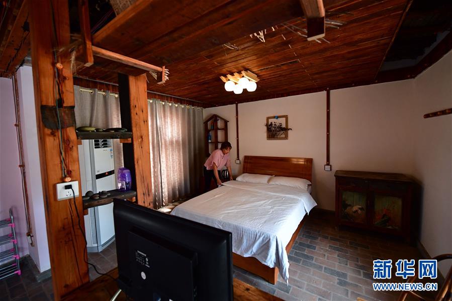 在河南蘭考縣東壩頭鄉(xiāng)張莊村,游文超的兒媳正在游家小院里打理民宿(6月21日攝)。新華社記者馮大鵬攝