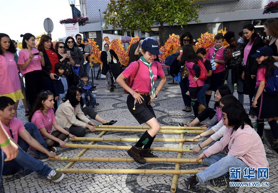 2018年6月16日,在葡萄牙阿威羅舉行的端午龍舟巡游活動(dòng)開(kāi)幕式上,阿威羅大學(xué)孔子學(xué)院的學(xué)生表演竹竿舞。 位于伊比利亞半島西南部的歐洲古國(guó)葡萄牙,山清水秀、風(fēng)景如畫(huà)。它東、北連接西班牙,西、南瀕臨大西洋。葡萄牙現(xiàn)有人口1029.1萬(wàn),國(guó)土面積約9.22萬(wàn)平方公里,首都為里斯本,官方語(yǔ)言為葡萄牙語(yǔ)。 新華社記者張立云攝