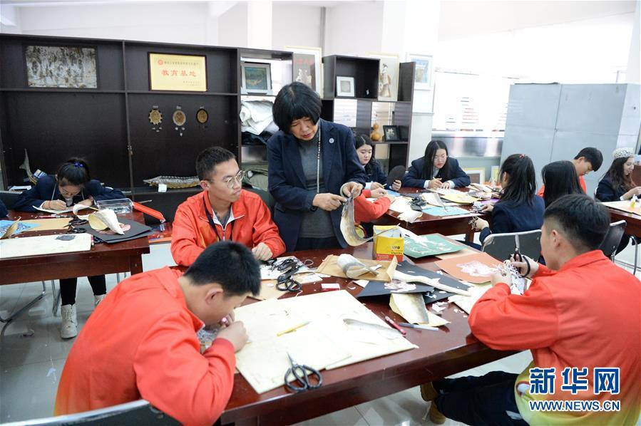 12月3日,張琳在哈爾濱輕工業(yè)學校講授魚皮畫制作技藝。國家級非物質文化遺產赫哲族魚皮制作技藝是我國赫哲族傳統(tǒng)手工藝術。作為這項技藝的黑龍江省級傳承人,十余年來,張琳一直從事魚皮畫的研究和創(chuàng)作,并通過做推廣、開講座、辦活動,讓更多年輕人了解并喜歡上這一傳統(tǒng)手工藝,將這項瀕臨失傳的藝術更好地傳承下去。新華社記者 王凱 攝