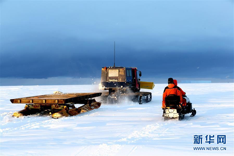 修路小組成員用雪地車裝備的鏟斗推平積雪(12月1日攝)。 搭載中國(guó)第35次南極科考隊(duì)的“雪龍”號(hào)極地考察船日前到達(dá)距離中山站44公里處的陸緣冰區(qū),準(zhǔn)備迎來本次南極科考首場(chǎng)攻堅(jiān)戰(zhàn)——物資卸運(yùn)。一支探冰小組隨即展開海冰探路,以期盡快打通從“雪龍”號(hào)到中山站的冰上運(yùn)輸線,盡早啟動(dòng)冰上運(yùn)貨。 新華社記者 劉詩(shī)平 攝