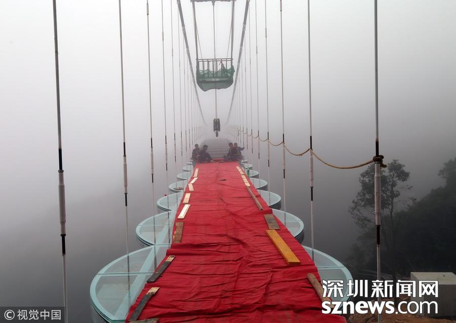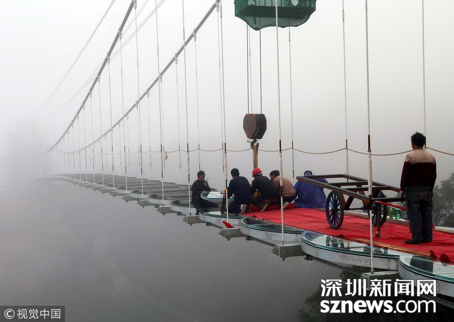 深圳新聞網(wǎng)訊 2018年12月3日,在浙江玉環(huán)市上棧頭玻璃吊橋建設(shè)工地上,工人們正在北端橋頭鋪設(shè)橋面4厘米厚的玻璃,預(yù)計(jì)46個箱梁的玻璃全部鋪設(shè)完成需到5日,然后再進(jìn)入安裝兩側(cè)護(hù)欄和拉攀抗風(fēng)拉索,吊橋工程竣工定于23日,準(zhǔn)備在2019年元旦試運(yùn)行。