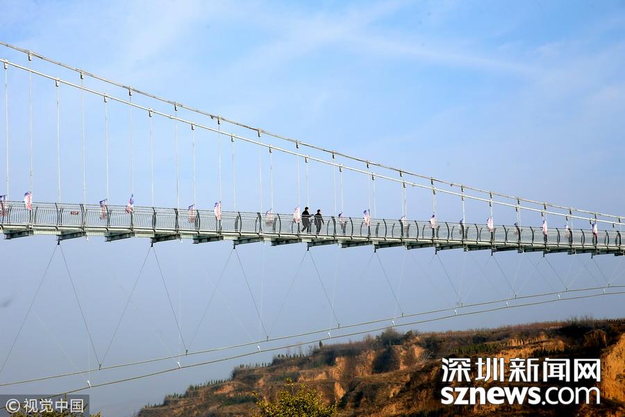 深圳新聞網(wǎng)訊 河南三門峽,位于陜州地坑院景區(qū)玻璃天橋。該項(xiàng)目橋梁總投資2600萬元,全長368米,寬3米,高108米,是目前河南省內(nèi)最長的玻璃天橋,還將陸續(xù)對外開放夜景效果、聲光效果以及更多的體驗(yàn)效果,逐步打造成整個豫西地區(qū)乃至全省的旅游打卡新地標(biāo)。