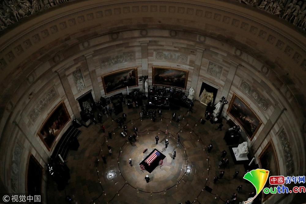 美國(guó)前總統(tǒng)老布什的遺體3日下午運(yùn)抵首都華盛頓,安放在國(guó)會(huì)大廈圓頂大廳,接受吊唁。