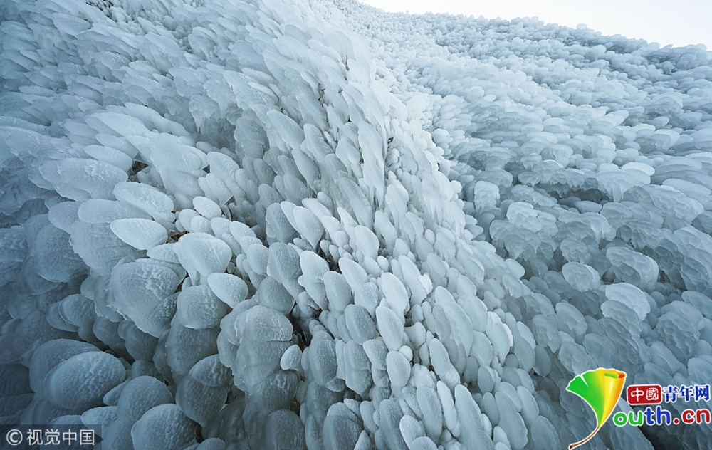 冰島瀑布結(jié)冰畫面震撼 如天外仙境