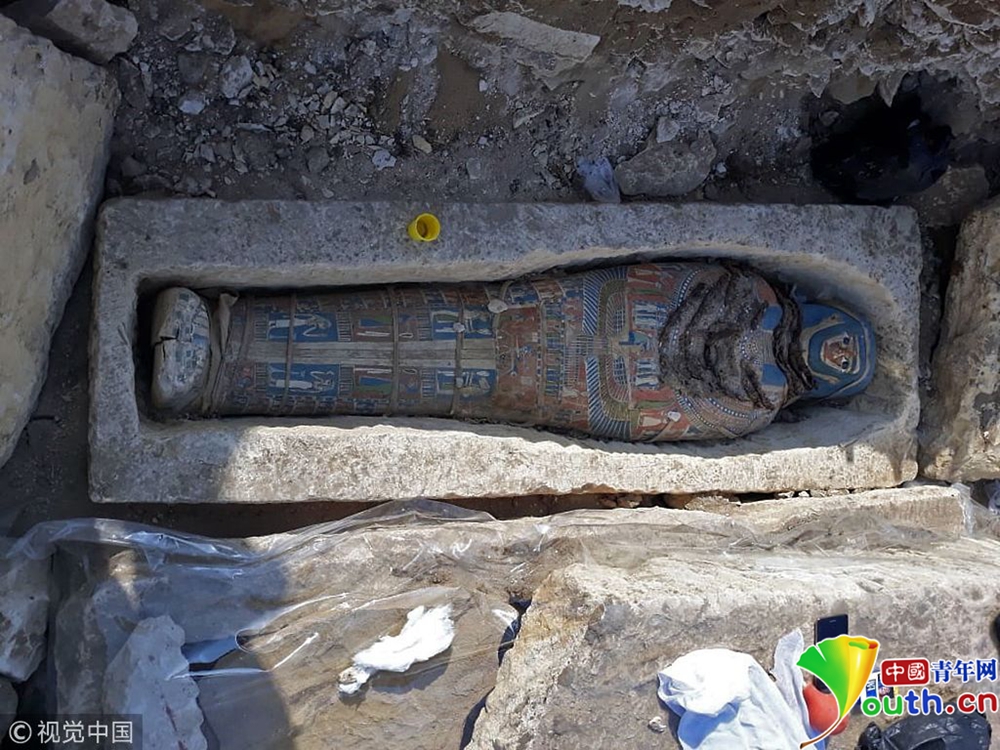 埃及古物部在一份聲明中稱,在代赫舒爾阿蒙尼米哈特二世的金字塔東南部地區(qū)工作的埃及考古小組發(fā)現(xiàn)了許多許多古代墓葬,內(nèi)有8具棺材。