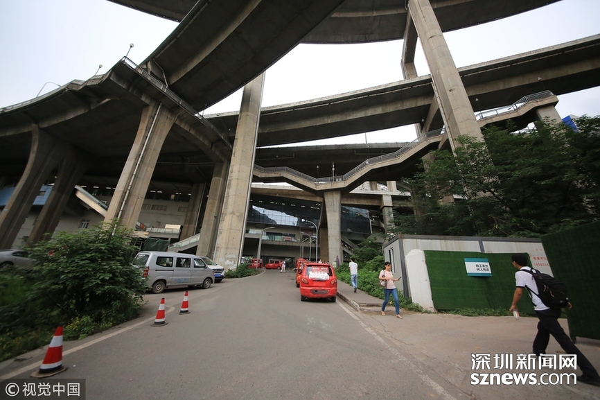 2018年5月29日,重慶,魔幻重慶又雙叒叕放大招!還有一個(gè)獨(dú)特的亮點(diǎn),重慶軌道交通3號(hào)線銅元局站,出口由一段長(zhǎng)梯銜接上方立交橋和下方的路面,與全國(guó)最高城市立交橋蘇家壩立交組成了獨(dú)特風(fēng)景,許多游客專門趕來拍照。