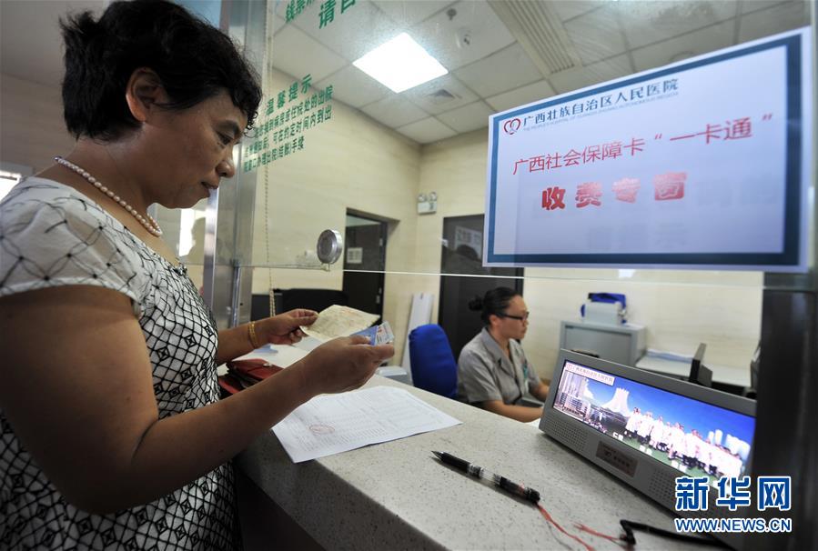 在廣西壯族自治區(qū)人民醫(yī)院,從北海到南寧異地就醫(yī)的鄭曉榮持社會保障卡在結算醫(yī)藥費(2015年6月30日攝)。 歷史進步的背后,必有堅強領導力量的引領。 “堅持黨的領導,全面從嚴治黨,是改革開放取得成功的關鍵和根本?!绷暯娇倳浛偨Y改革開放40年歷史和實踐作出這一重要論斷。 歷史關頭,中國共產黨的關鍵抉擇,改變了當代中國的命運; 宏偉征程,中國共產黨帶領億萬人民在改革開放實踐中,實現歷史性跨越; 面向未來,中國共產黨肩負實現中華民族偉大復興的歷史使命,把改革開放繼續(xù)推向前進。 新華社記者李斌攝