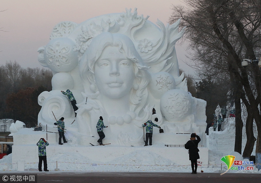 探秘哈爾濱太陽島雪博會(huì):雪雕師精雕細(xì)刻建造忙