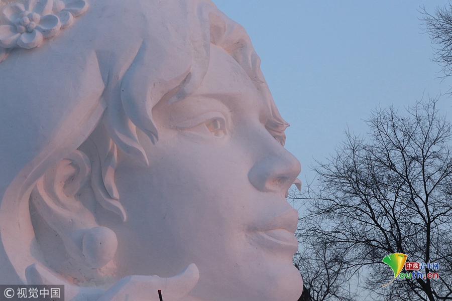 2018年12月13日,黑龍江省哈爾濱市,國內最大的雪雕盛會太陽島雪博會正在緊鑼密鼓建設中,部分雪雕雛形已現(xiàn),雪雕師正在精雕細刻打磨中。