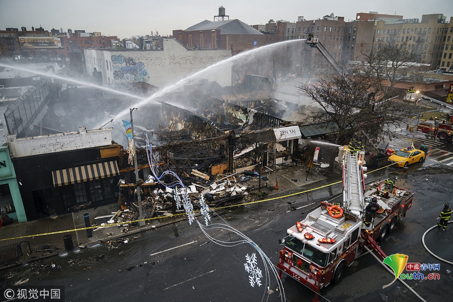 美國(guó)紐約發(fā)生大火吞噬六家商鋪 消防員撲滅火災(zāi)余燼