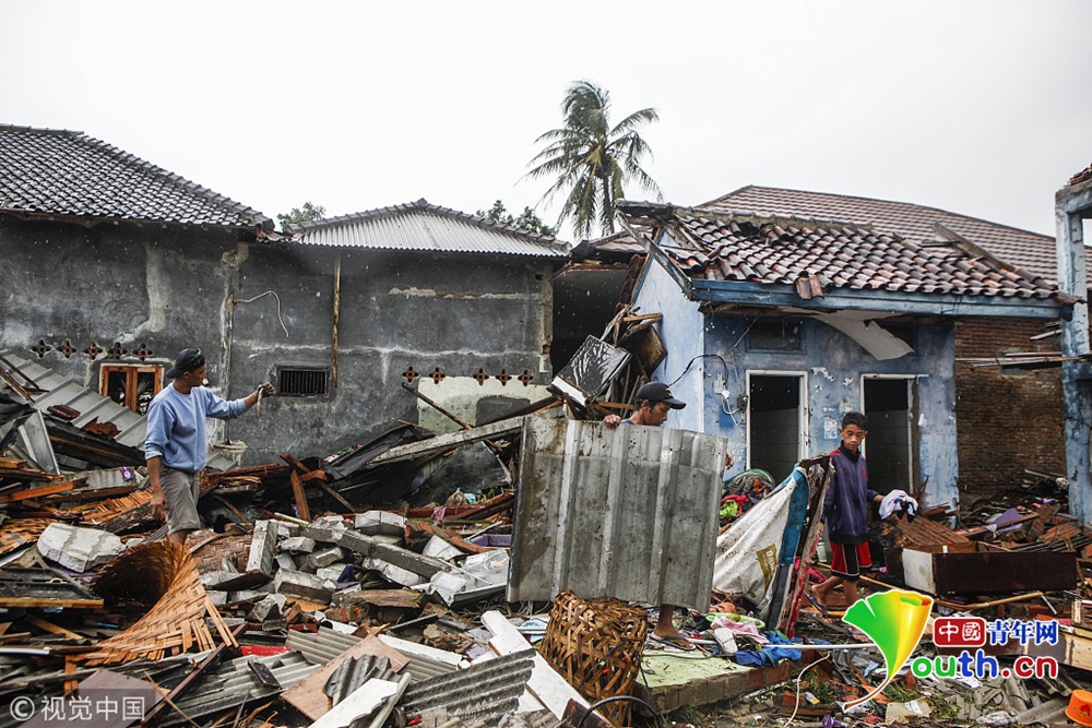 12月24日,受災(zāi)民眾在印尼萬丹省海嘯災(zāi)區(qū)進(jìn)行清理工作。 印度尼西亞抗災(zāi)署發(fā)言人24日說,印尼西部巽他海峽海嘯死亡人數(shù)已經(jīng)上升至373人。 新華社記者 張可任 攝