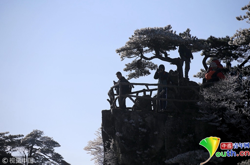 安徽黃山出現(xiàn)了四月陽春罕見的霧凇奇觀。