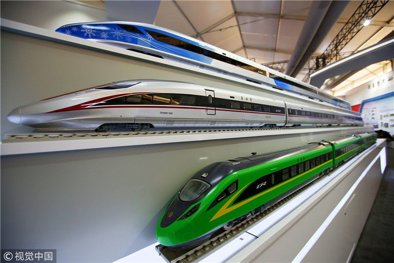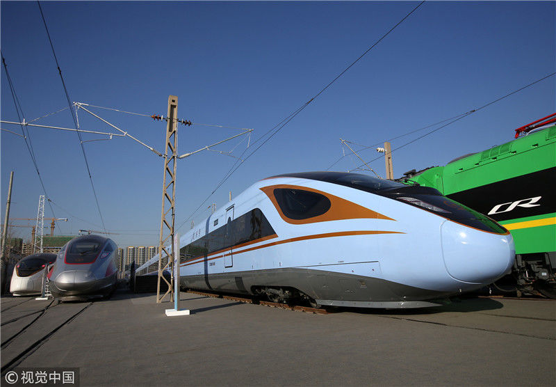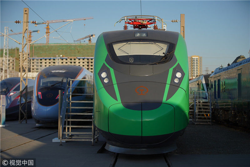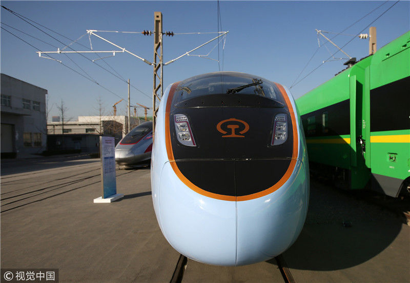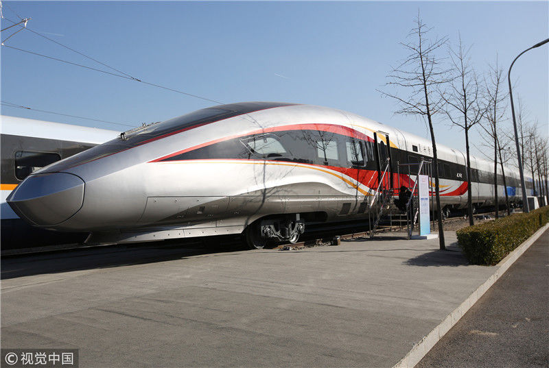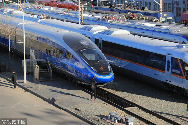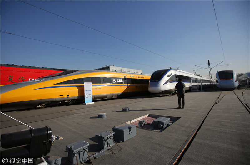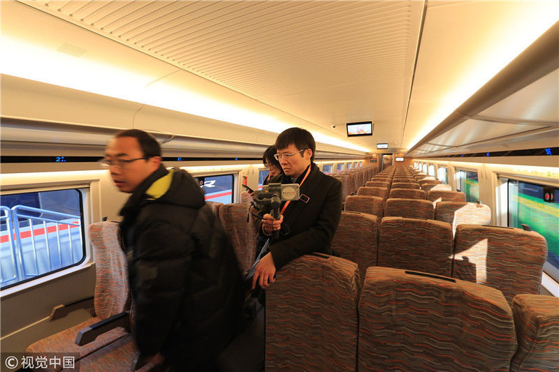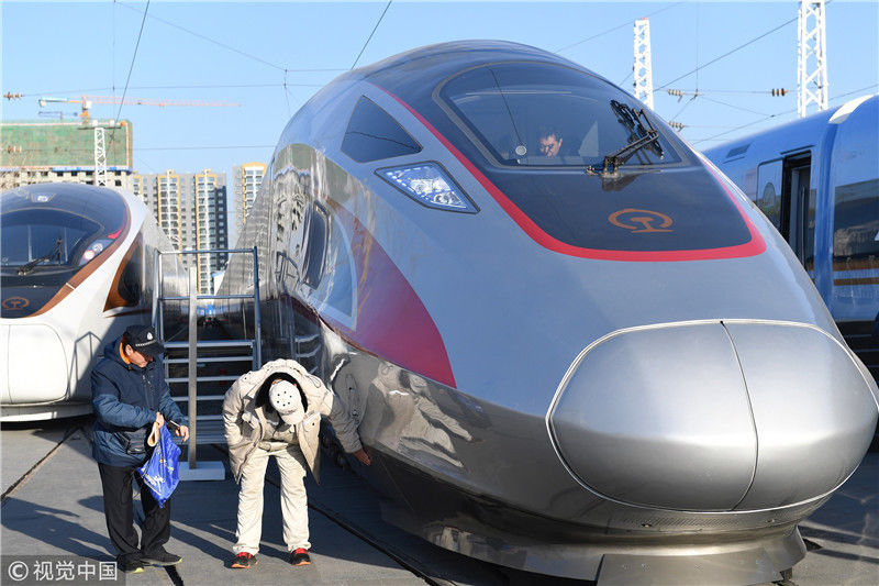 2018年12月24日,北京,中國(guó)鐵路科技創(chuàng)新成果展在國(guó)家鐵道試驗(yàn)中心舉行。新型復(fù)興號(hào)動(dòng)車組實(shí)車首次公開亮相,現(xiàn)場(chǎng)體驗(yàn)乘車運(yùn)行。視覺中國(guó)