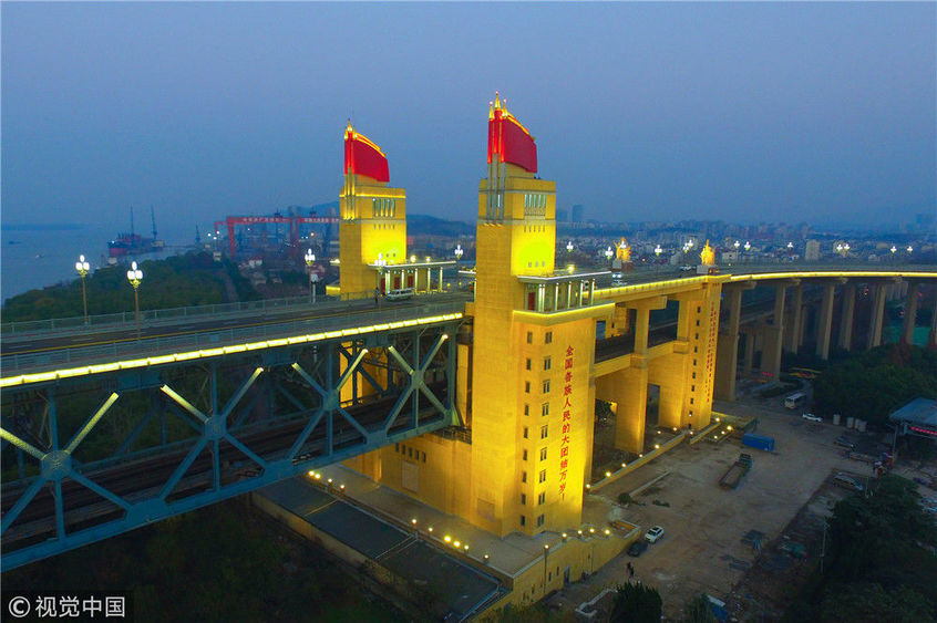 2016年10月28日晚,服役48年的南京長江大橋正式封閉,進(jìn)入合同工期長達(dá)27個月的改造提升期。身為我國橋梁建設(shè)領(lǐng)域的扛鼎之作,南京長江大橋的此次封閉改造牽涉到公路繁忙、鐵路風(fēng)險(xiǎn)、技術(shù)攻關(guān)、文物保護(hù)等諸多難點(diǎn),不僅影響面廣,而且社會關(guān)注度極高。如今,隨著整個工程進(jìn)入收尾階段,即將于2018年12月底正式通車。圖為2018年12月13日,夜幕降臨,南京長江大橋歸位后的玉蘭花燈重新點(diǎn)亮。大橋玉蘭花燈柱共有299根,每根燈柱上有5盞玉蘭花燈,1大4小,一共1495盞。