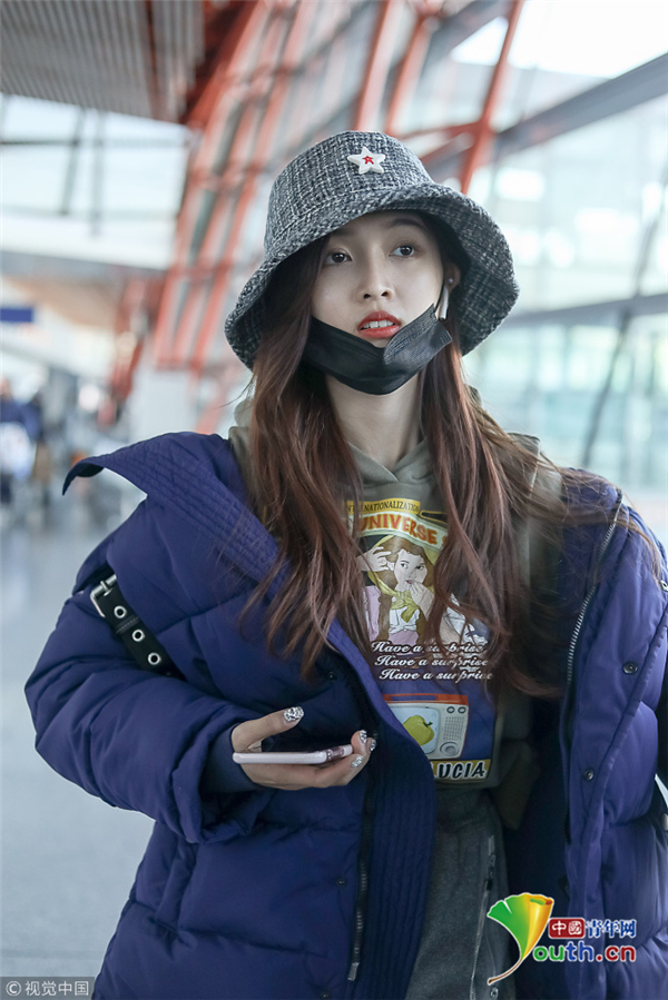 1月1日,北京,吳宣儀現(xiàn)身機場。外帶著漁夫帽的她嘟嘴顯可愛,裹著厚重羽絨服認真過冬超保暖。