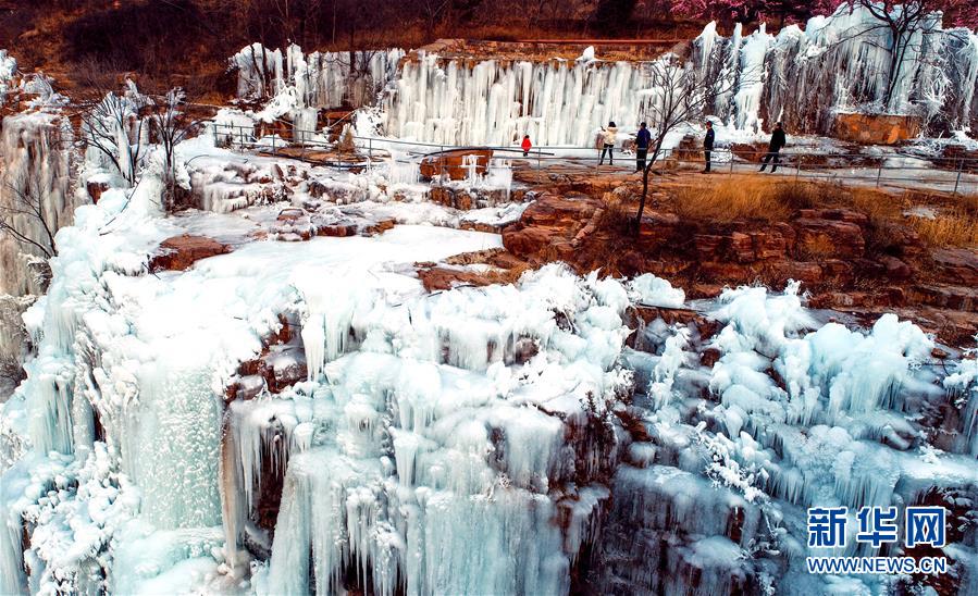 1月12日,游客在涉縣太行五指山景區(qū)觀(guān)賞冰瀑。新華社記者王曉攝