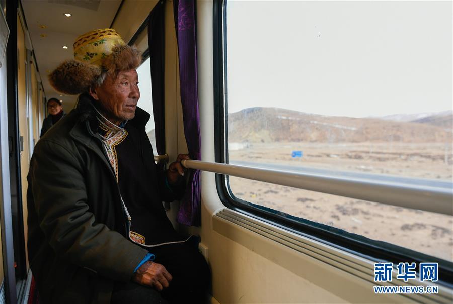 大學生剛措(右)和桑旦措姆(中)放寒假乘坐Z6802次列車回老家那曲(1月11日攝)。