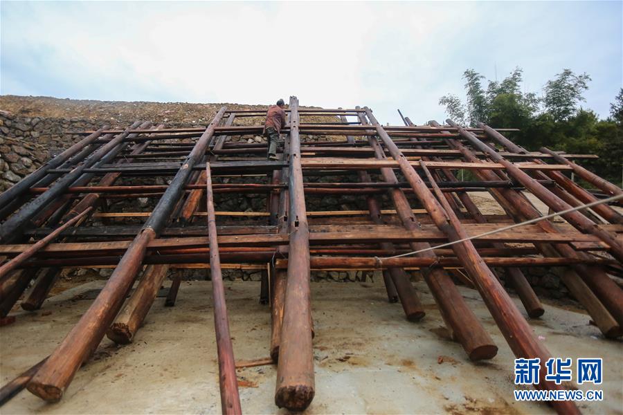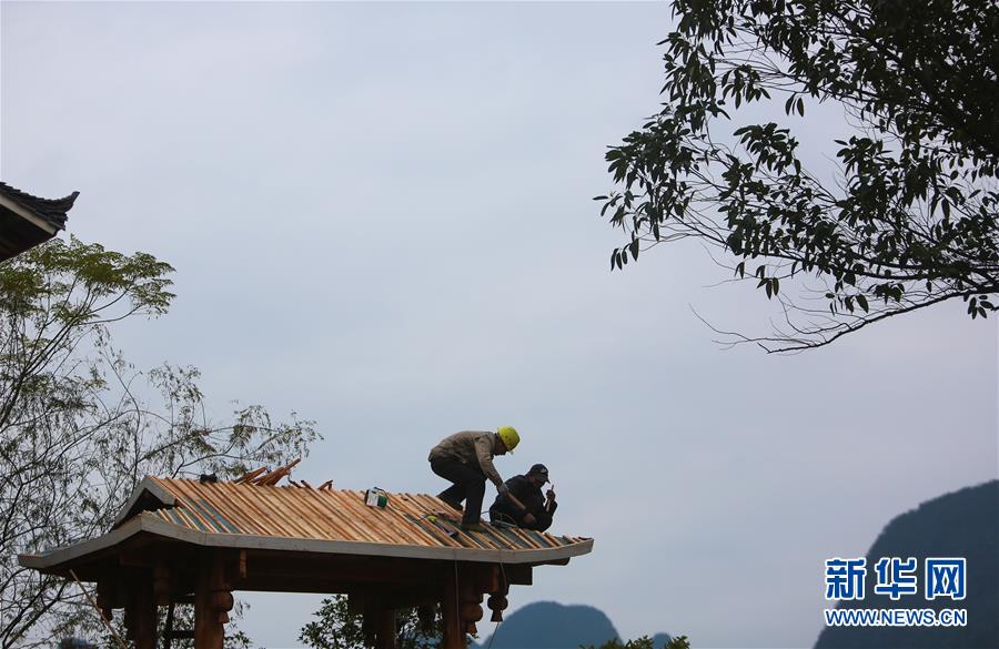 1月15日,工人在廣西融水苗族自治縣融水鎮(zhèn)夢嗚苗寨建設房屋。新華社記者 陳君清 攝