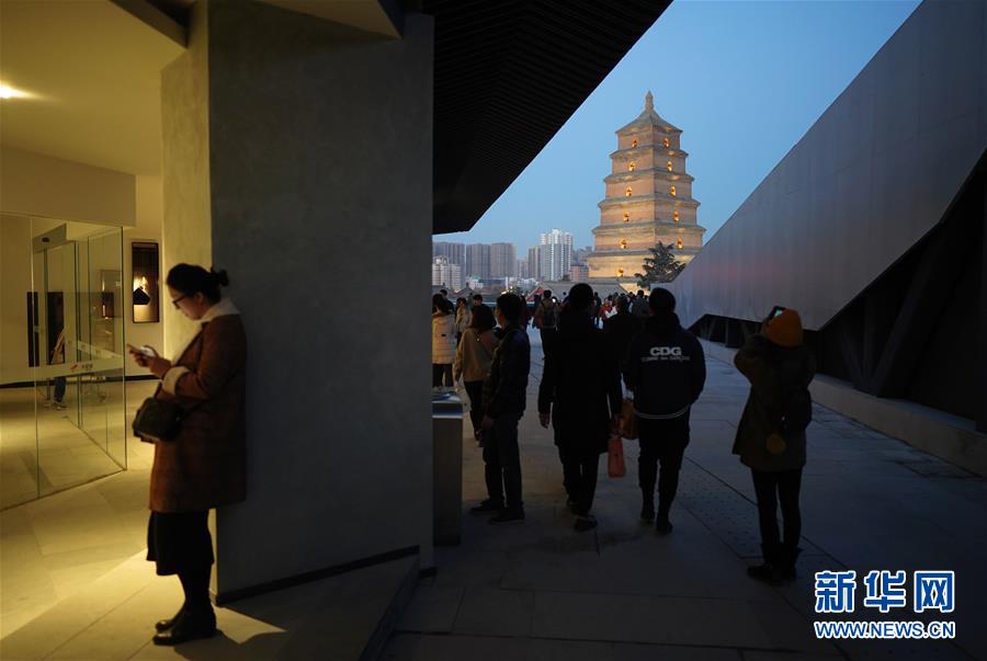 這是從一家商業(yè)綜合體觀景平臺上拍攝的大雁塔(2018年12月16日攝)。 隨著時代發(fā)展,西安著名歷史遺跡大雁塔的周邊商圈也歷經(jīng)變遷。通過近年來的改造提升,大雁塔商圈如今煥然一新,新潮時尚的大型商業(yè)綜合體和商業(yè)街區(qū)為古老的大雁塔注入了現(xiàn)代活力,也為來大雁塔游玩的游客提供了更好的旅游體驗。 新華社記者 邵瑞 攝