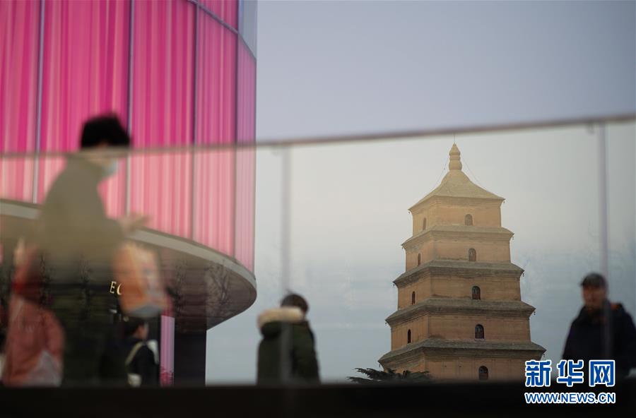 改造后的商圈建筑“邂逅”大雁塔(1月15日攝)。 隨著時代發(fā)展,西安著名歷史遺跡大雁塔的周邊商圈也歷經(jīng)變遷。通過近年來的改造提升,大雁塔商圈如今煥然一新,新潮時尚的大型商業(yè)綜合體和商業(yè)街區(qū)為古老的大雁塔注入了現(xiàn)代活力,也為來大雁塔游玩的游客提供了更好的旅游體驗。 新華社記者 邵瑞 攝
