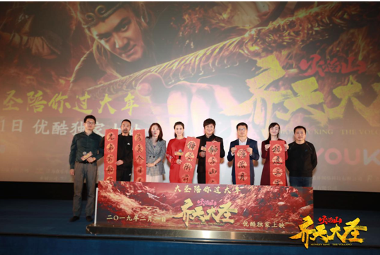由于《齊天大圣之火焰山》的上線時(shí)間正巧是在春節(jié)假期前后,是名副其實(shí)的“春節(jié)檔”。因此,在發(fā)布會(huì)現(xiàn)場(chǎng),主持人引領(lǐng)現(xiàn)場(chǎng)觀眾為影片《齊天大圣之火焰山》加油助威,喊出了“大圣陪你過大年”的口號(hào)。現(xiàn)場(chǎng)陳浩民及李若彤在觀眾們的歡呼聲中,與大家一起和影留念,并在現(xiàn)場(chǎng)為觀眾和粉絲朋友們派發(fā)了小禮品。作為春節(jié)檔上線的網(wǎng)絡(luò)電影,《齊天大圣之火焰山》在一定程度上有著相當(dāng)深刻的行業(yè)意義,此次發(fā)布會(huì)也為影片的定檔上線喝足了彩頭。