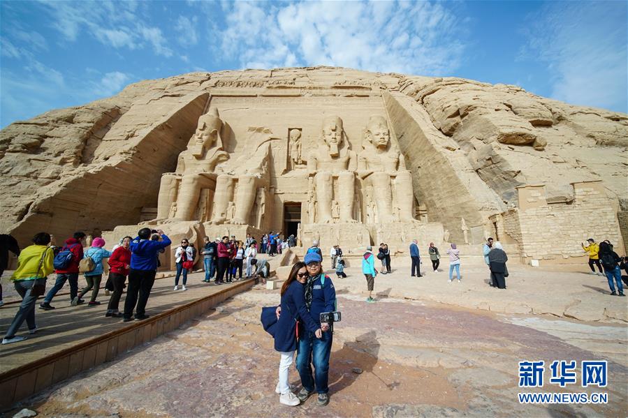 2月7日,在埃及南部阿斯旺省,兩名中國游客在阿布·辛拜勒神廟前自拍留影。 雖然中國人過春節(jié)的傳統(tǒng)是返鄉(xiāng)回家,但越來越多的國人選擇在春節(jié)期間走出國門,利用春節(jié)假期外出旅游。 新華社記者 李碧念 攝