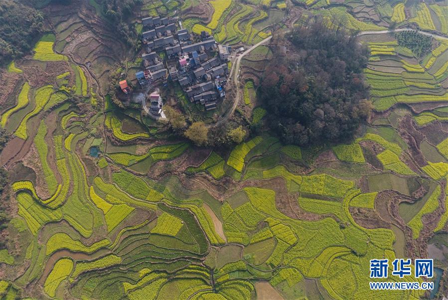 廣西融安縣東起鄉(xiāng)長豐村的田園春色(3月10日無人機(jī)拍攝)。 近日,隨著氣溫持續(xù)回升,廣西融安縣境內(nèi)的油菜花開放,春意盎然。 新華社記者 黃孝邦 攝