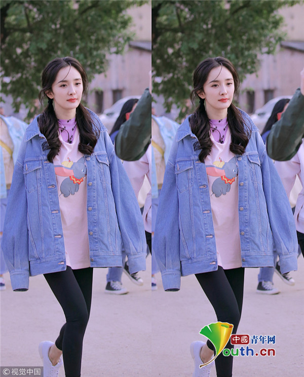 2019年3月12日,湖南長沙,楊冪錄制某綜藝節(jié)目路透曝光。她扎著雙馬尾甜美可愛似少女,穿oversized的牛仔外套和寬大T恤,戴著防曬的護(hù)袖,身材十分纖細(xì)苗條。錄制期間,楊冪氣質(zhì)明艷靈動(dòng)活潑,元?dú)鉂M滿青春感爆棚。