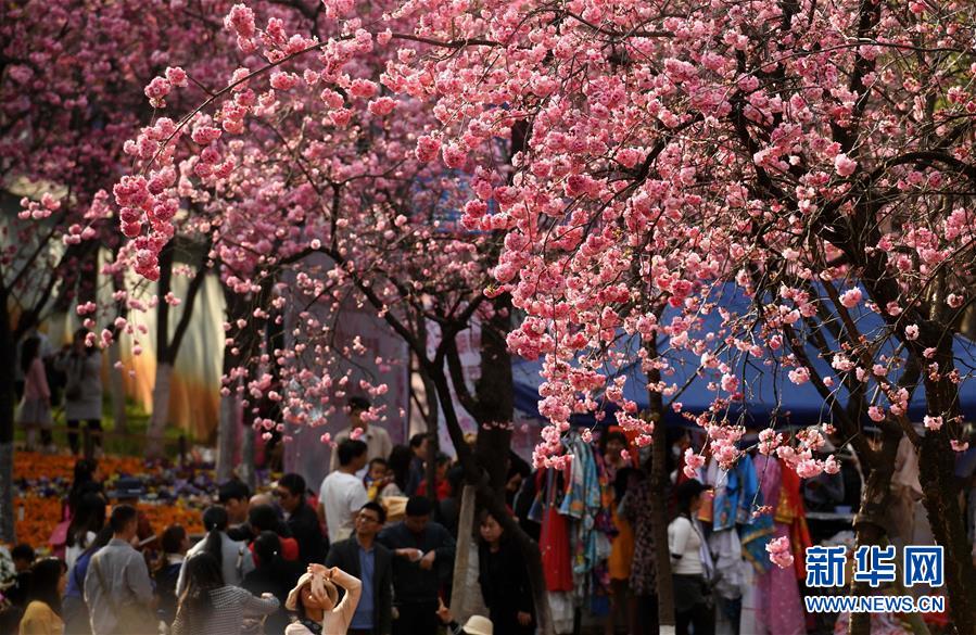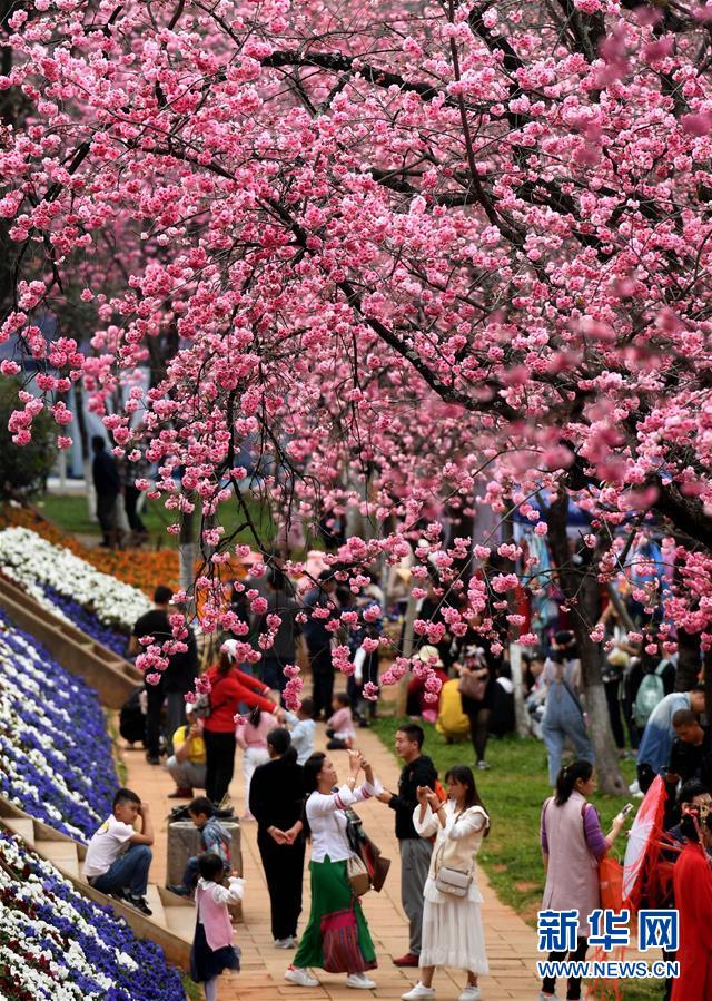 昆明櫻花盛開(kāi) 游人紛至沓來(lái)