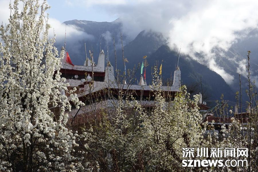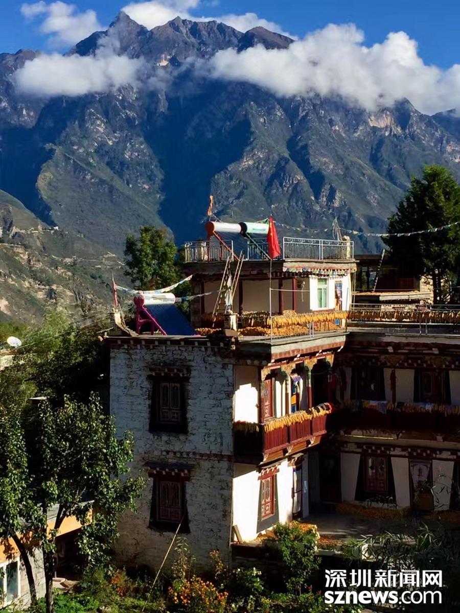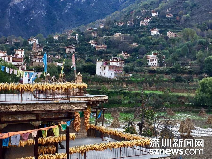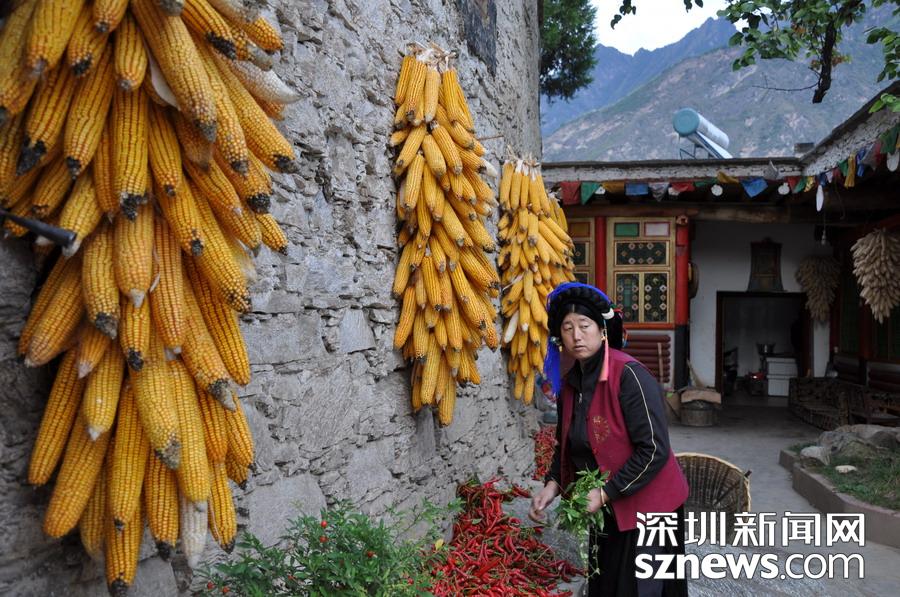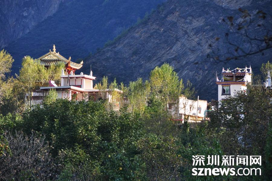 “甲居”,藏語是百戶人家之意。甲居藏寨距丹巴縣城約8公里,從大金川河谷層層向上攀緣,一直伸延到卡帕瑪群峰腳下。在相對高差近千米的山坡上,一幢幢藏式樓房和碉樓灑落在綠樹鮮花叢中,將田園牧歌式的風光展示在人們眼前。李仁奇攝