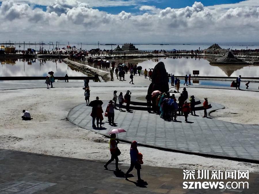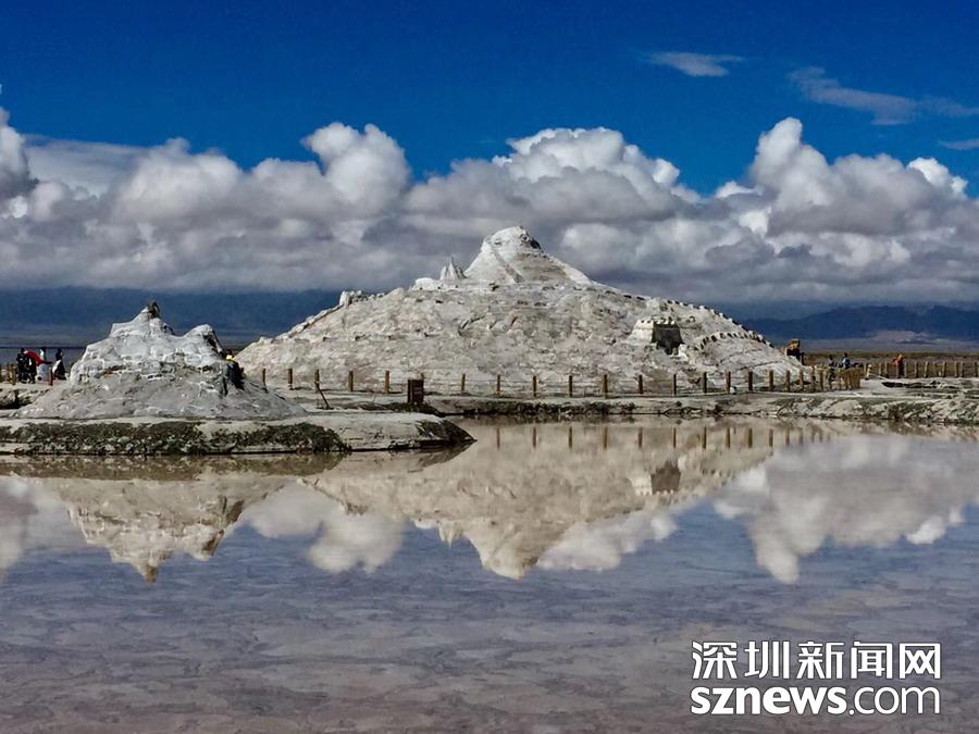 茶卡鹽湖位于青海省海西蒙古族藏族自治州烏蘭縣茶卡鎮(zhèn),原來是一家生產(chǎn)湖鹽的企業(yè),其擁有的鹽湖面積達105平方公里。近年來他們開始轉型發(fā)展旅游業(yè),以其獨特的“天空之鏡”享譽全國。李仁奇 攝