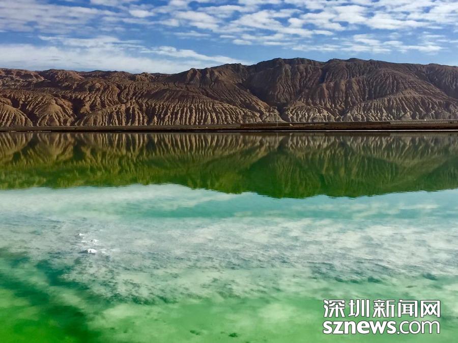 它深藏在邊遠的青新邊界地區(qū),目前還不為人識。它就是正在開發(fā),景觀可以媲美茶卡而又勝于茶卡的翡翠湖。 李仁奇 攝