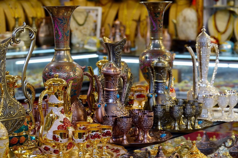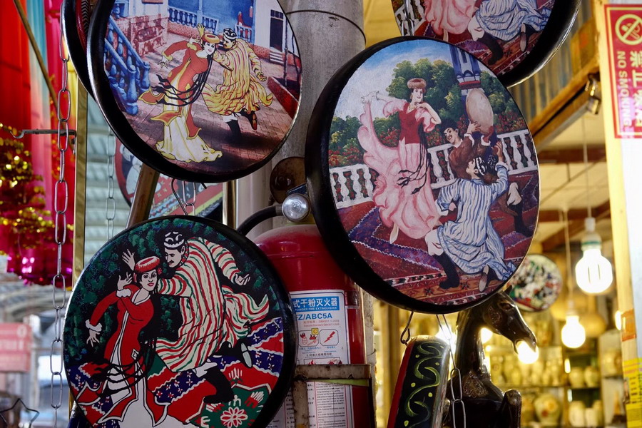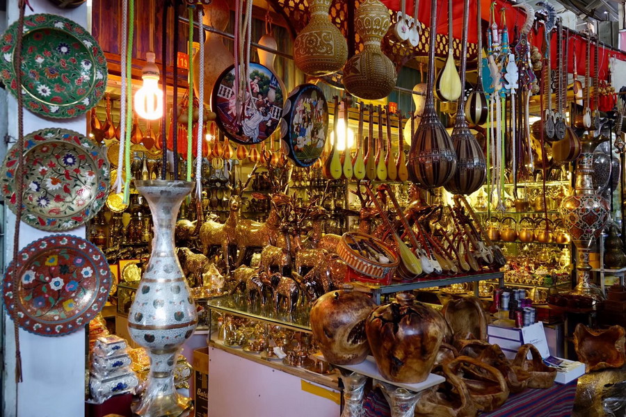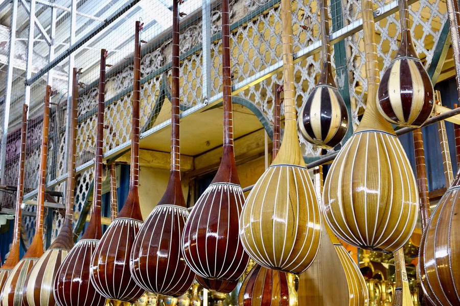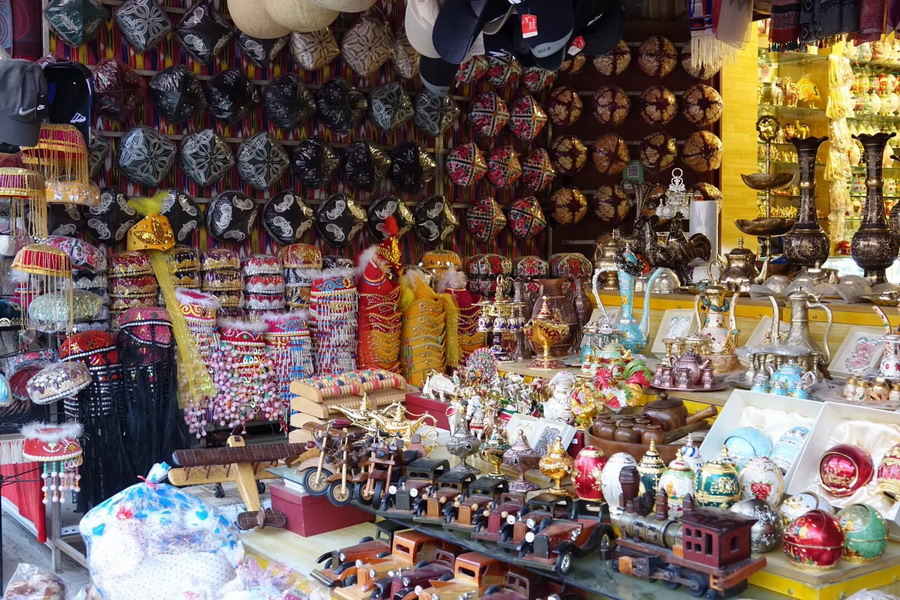 兩千多年前,這里是古疏勒國王宮所在地,從500多年前建立艾提尕爾清真寺起始,吾斯塘博依街逐漸成為一條喧鬧繁華的主街,匯聚了當?shù)刈畛錾哪芄で山?,是名副其實的手工藝品一條街。李仁奇 攝