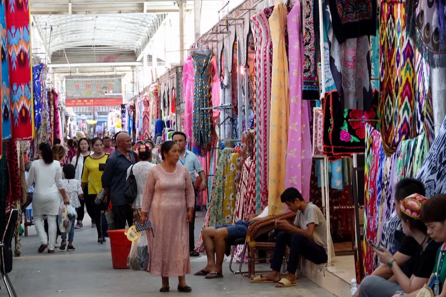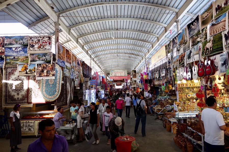 已有2000多年歷史,古代是亞洲最大的集市。現(xiàn)在的大巴扎占地250畝,內設21個專業(yè)市場,5000多個攤位,每天人流量達10萬以上,是我國西北地區(qū)最大的國際貿(mào)易市場。李仁奇 攝